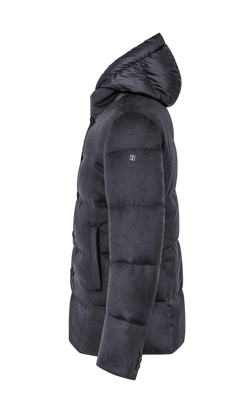 The main fabric is a lightweight technical wool paired with technical jersey, which gives softness, a clean surface appearance and pilling res1stance. The down padding guarantees high thermal comfort and weather resistance.