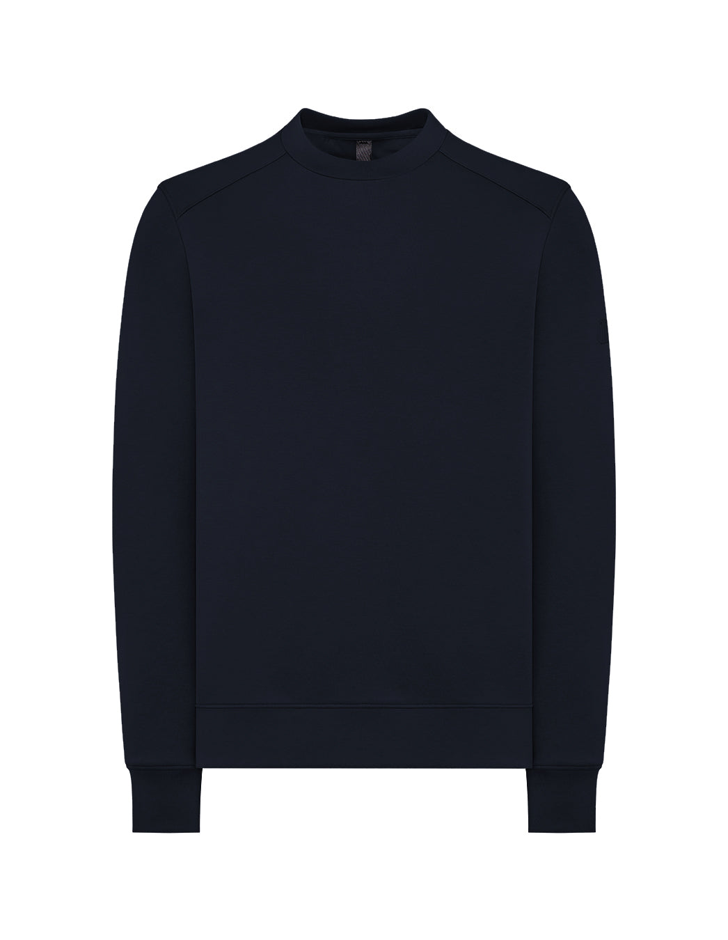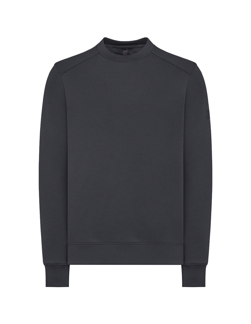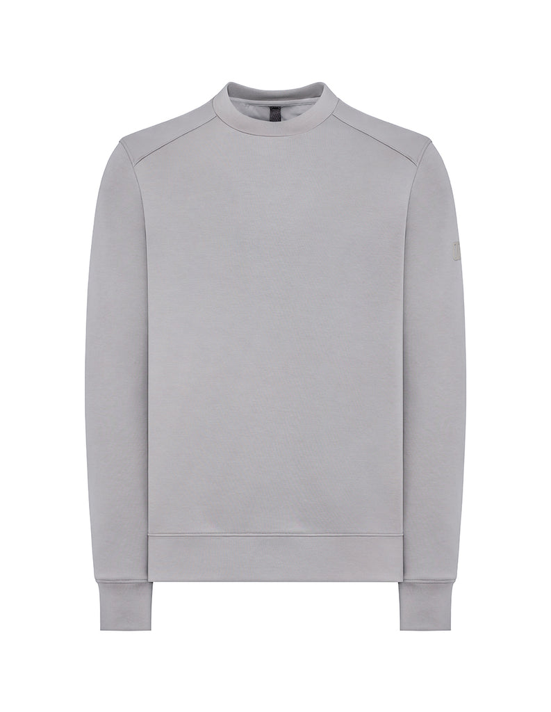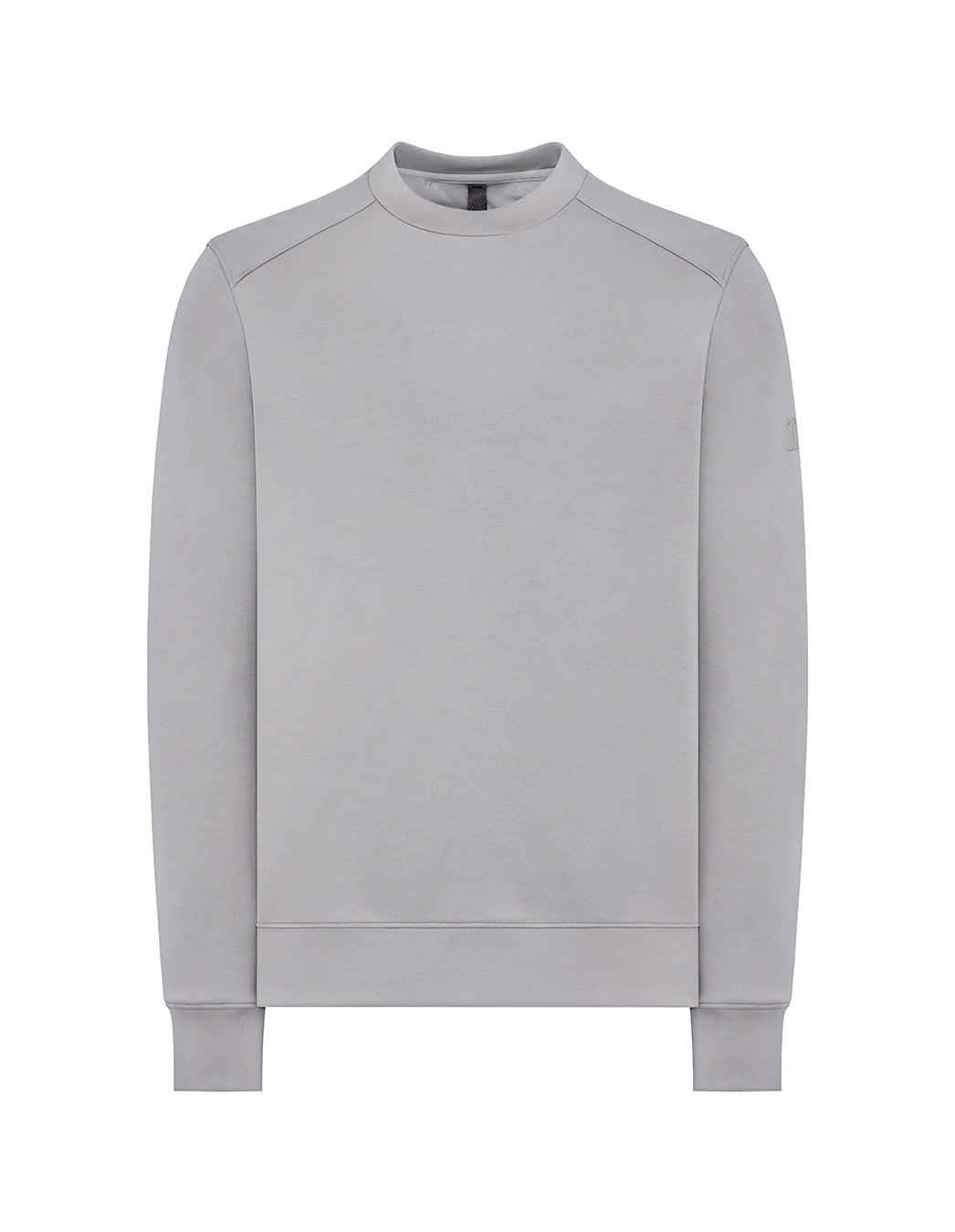 Crew neck sweatshirt with fabric trims at the hemline and cuffs.