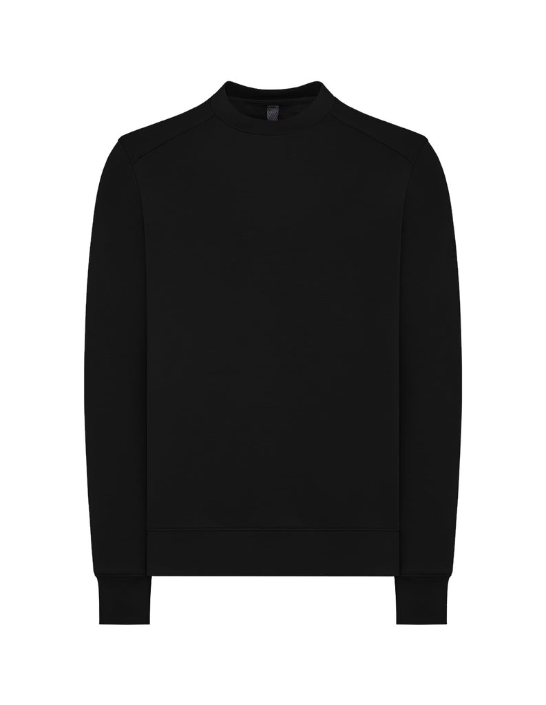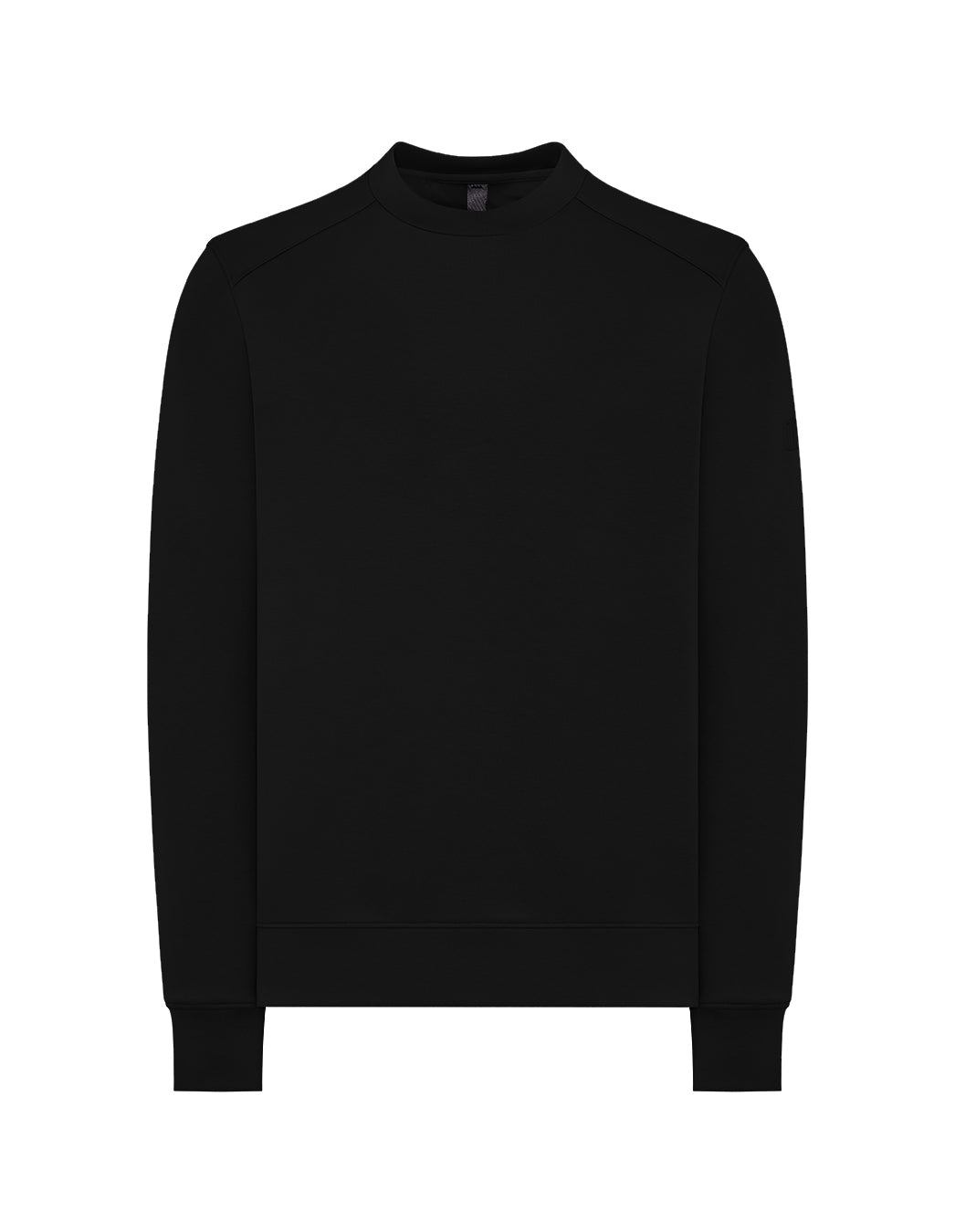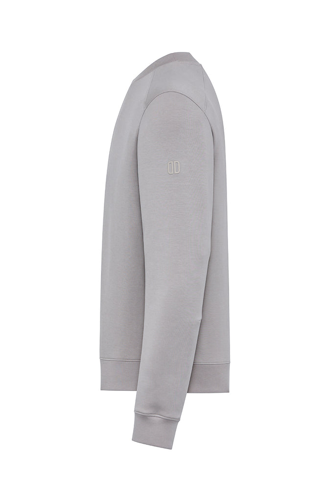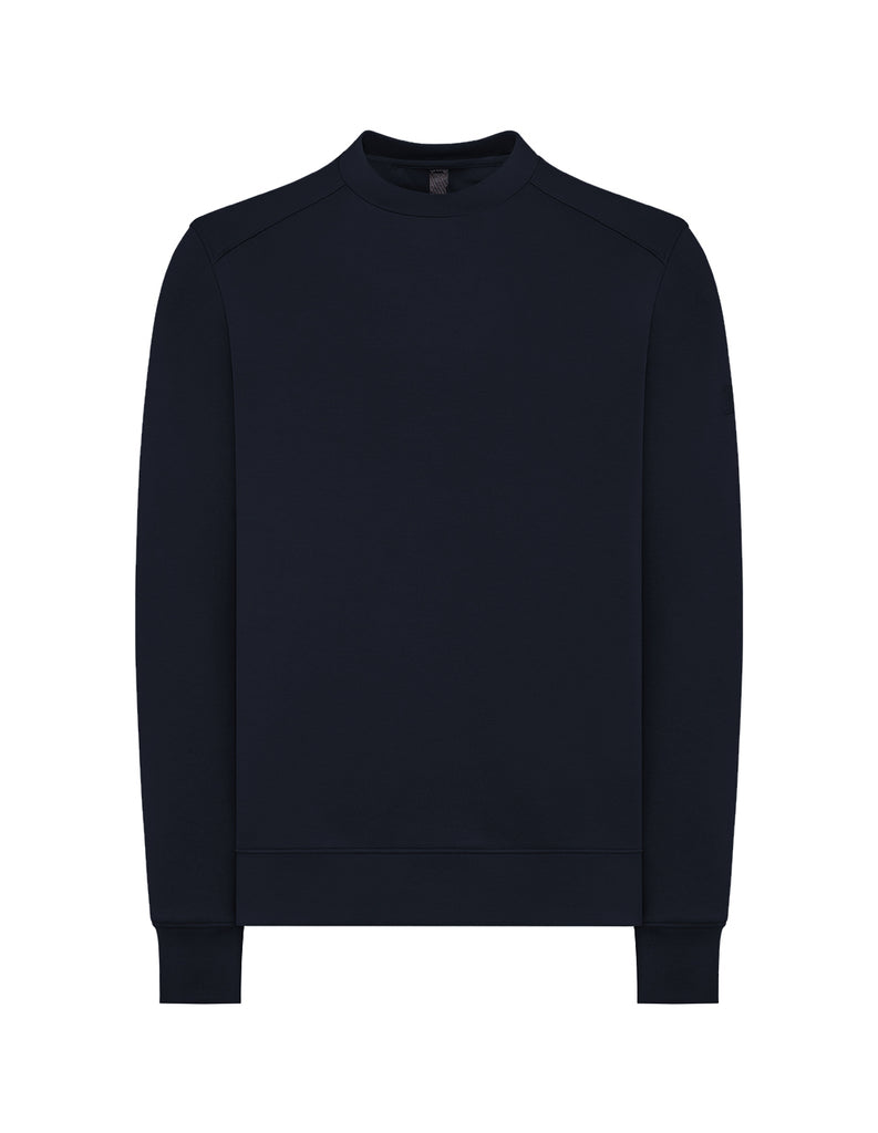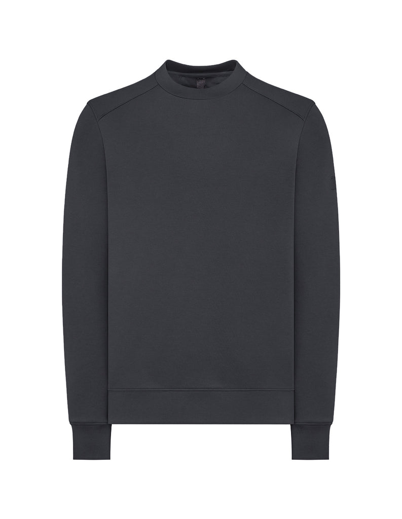 Crew neck sweatshirt with fabric trims at the hemline and cuffs.