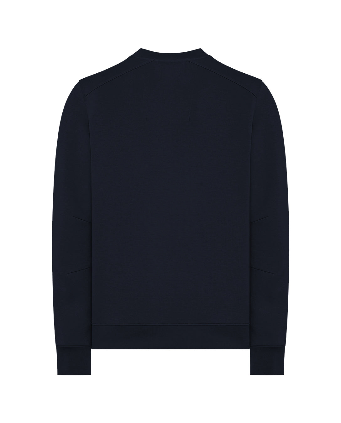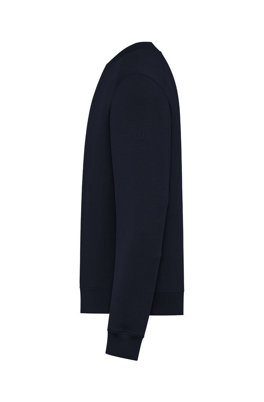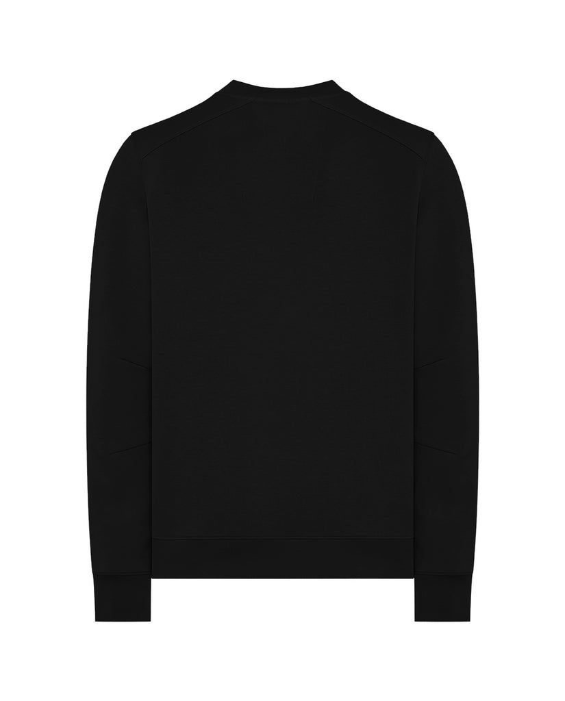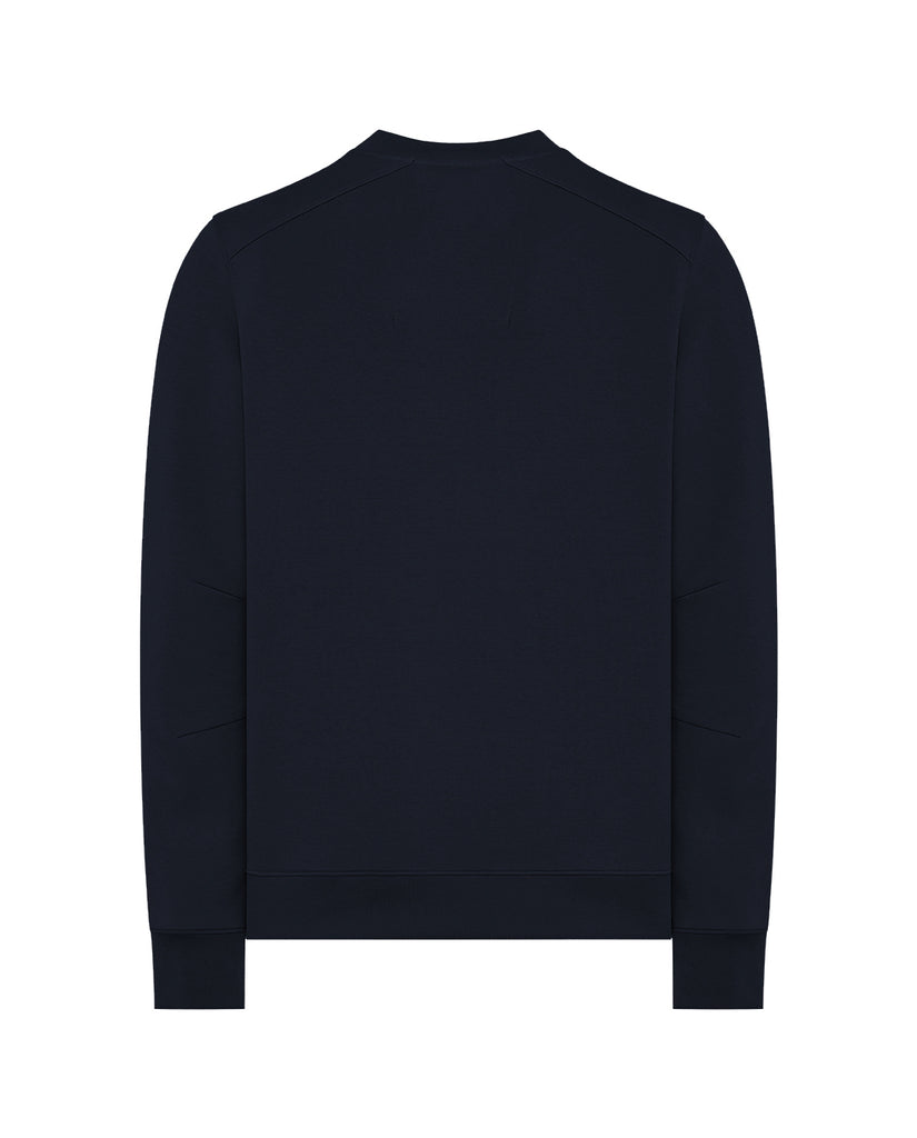 Crew neck sweatshirt with fabric trims at the hemline and cuffs.