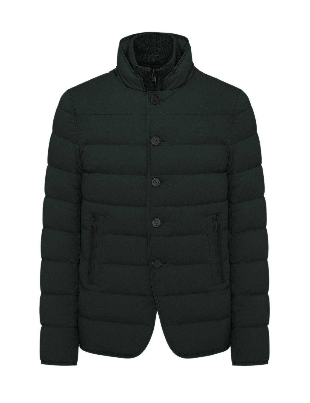 Extremely comfortable, water-resistant and wrinkle-free bi-stretch technical fabric. The down padding gives extreme lightweight and adjusts the thermoregulation of the body, preserving the microclimate inside the garment.