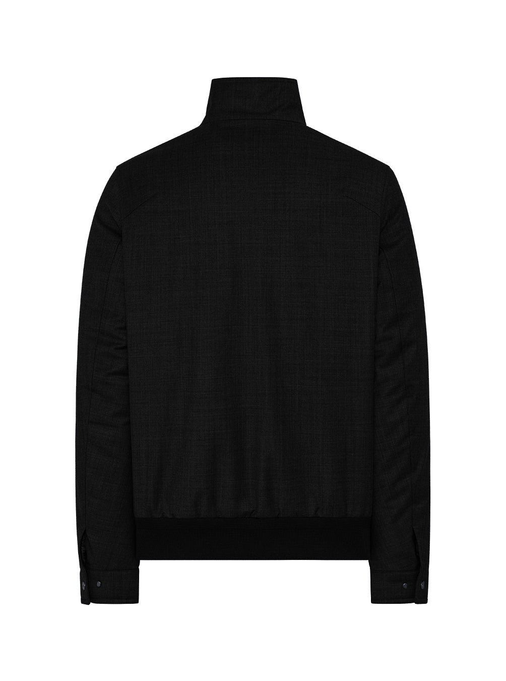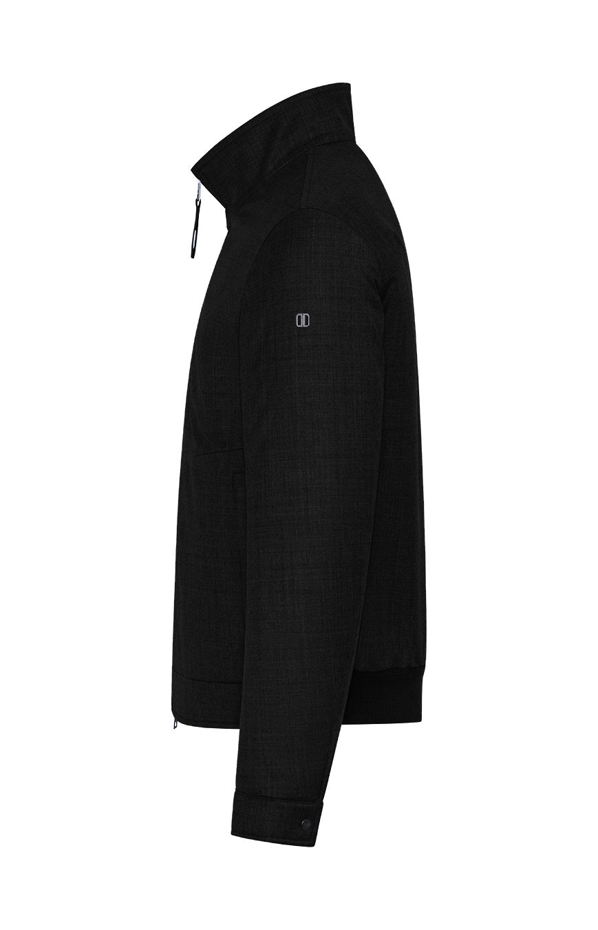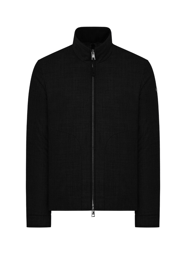 Short jacket made of pure wool with faux fur lining. Stand collar with ribbed wool lining, front closure with full-length double-slider zipper and back hemline with ribbed wool. Side pockets with zipper covered by welt and cuffs adjustable through snap buttons. Pockets with zippers on the inside of the garment.