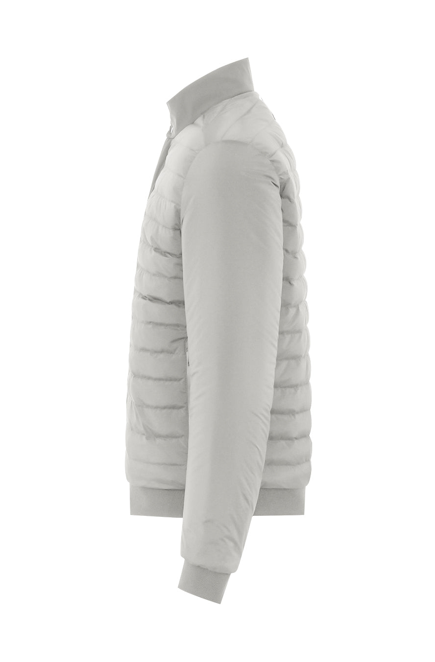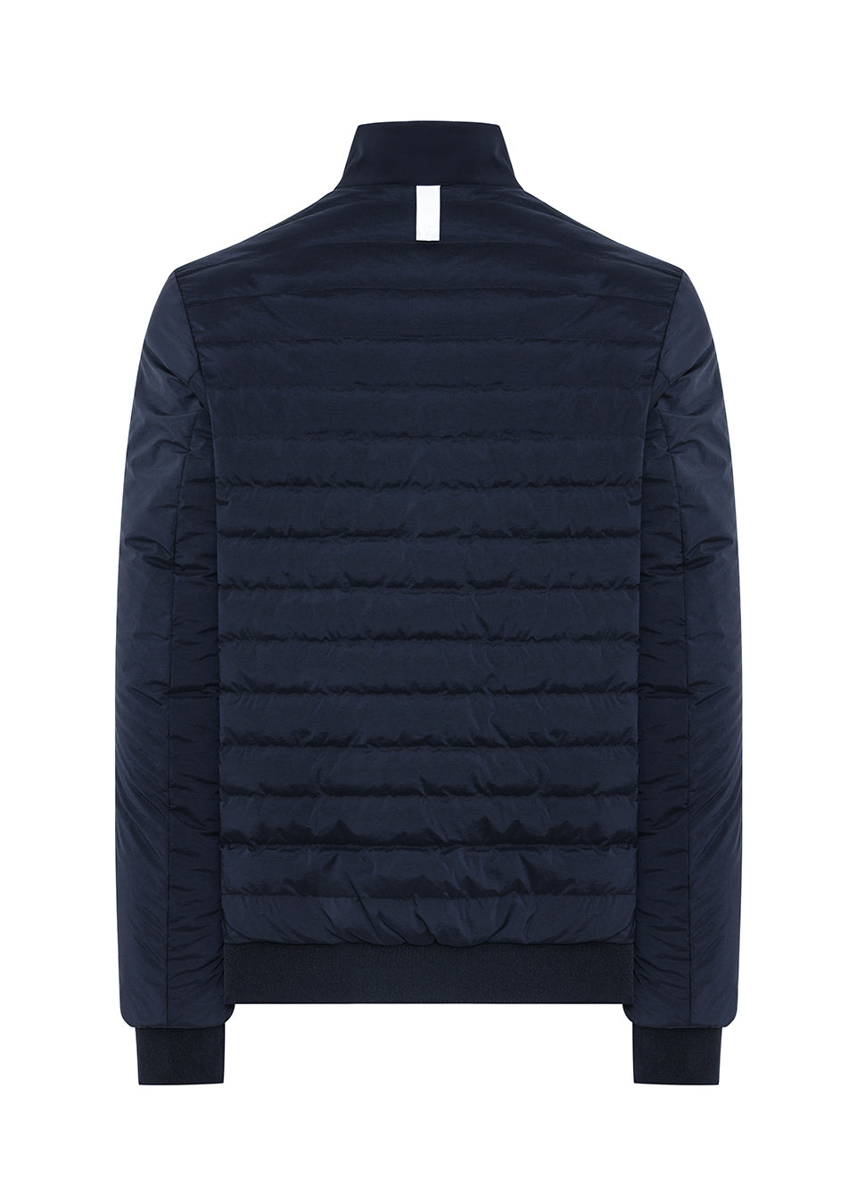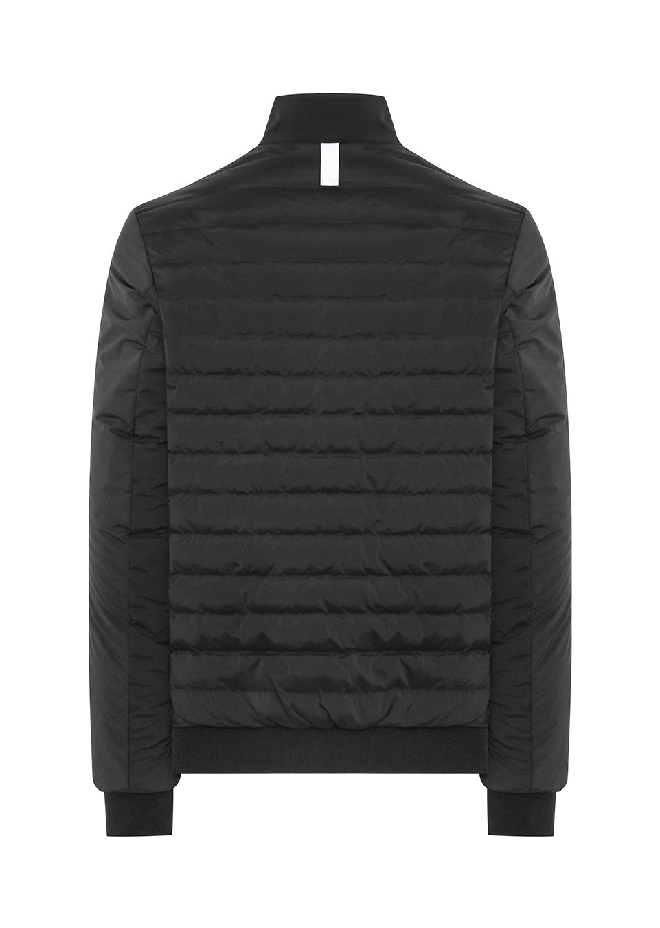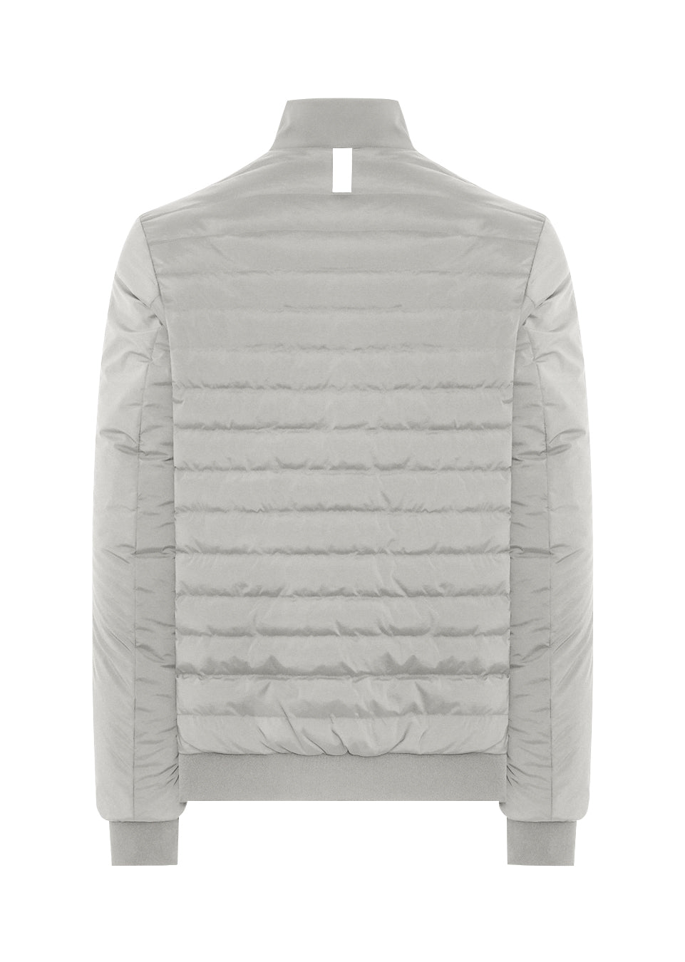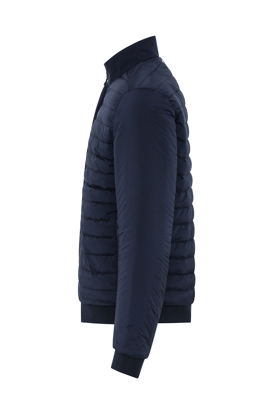 • Inside, a down jacket in stretch technical fabric with side seam pockets and zip closure