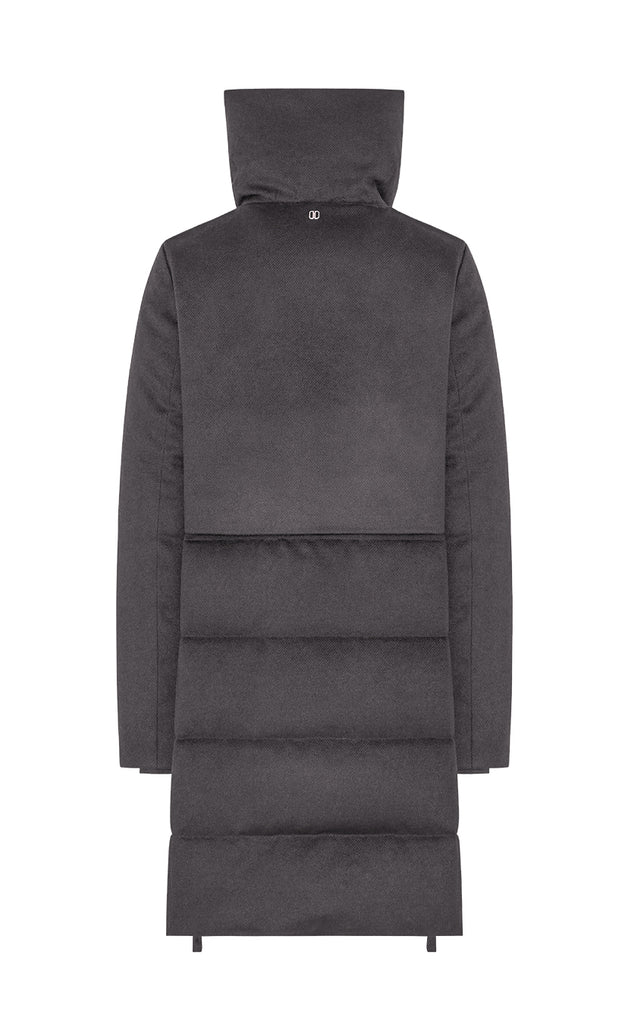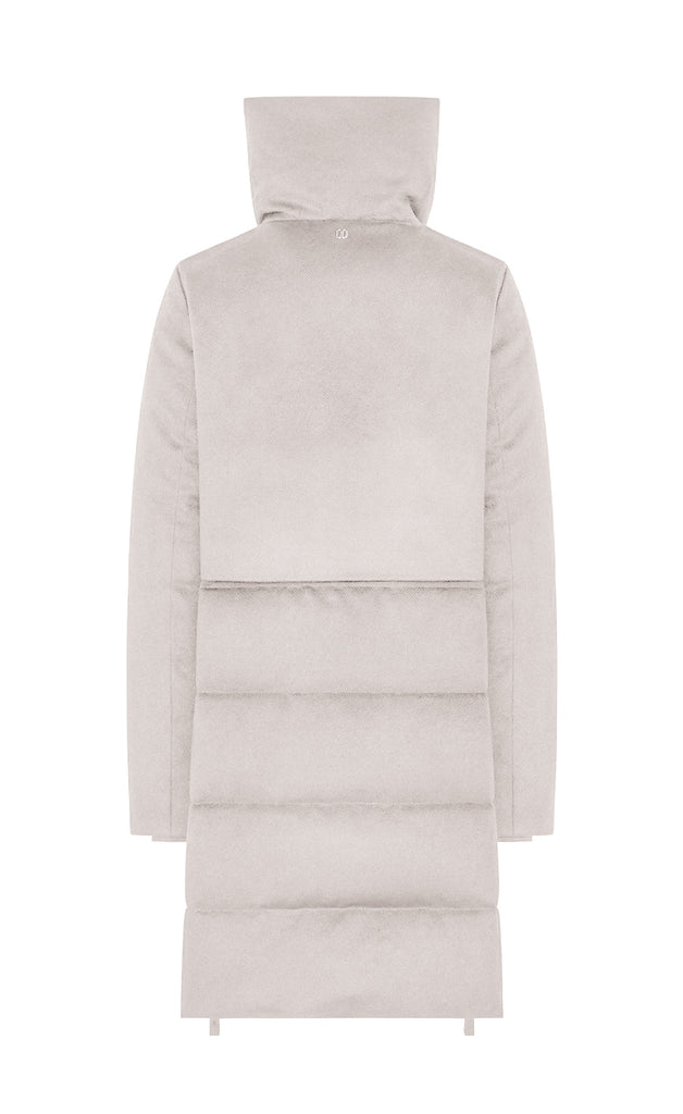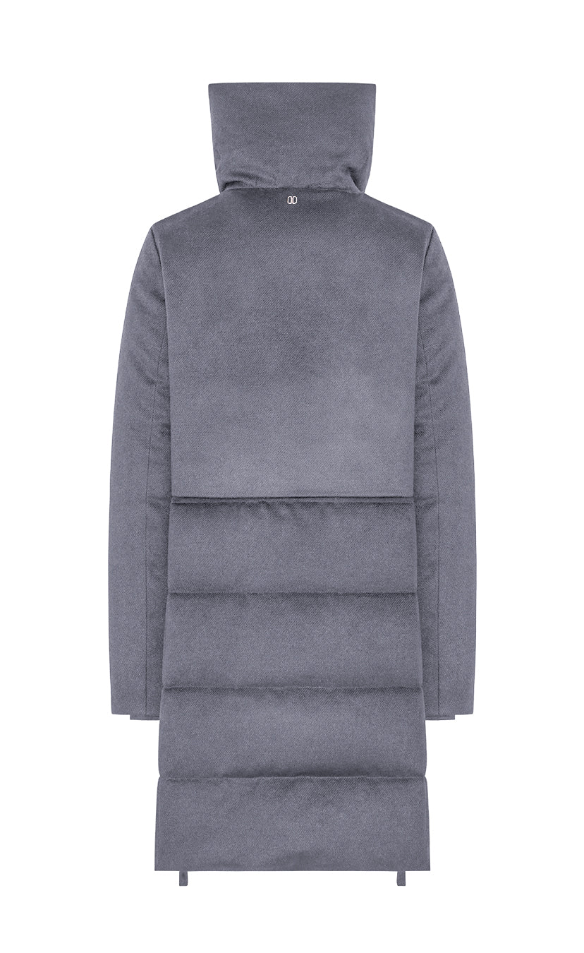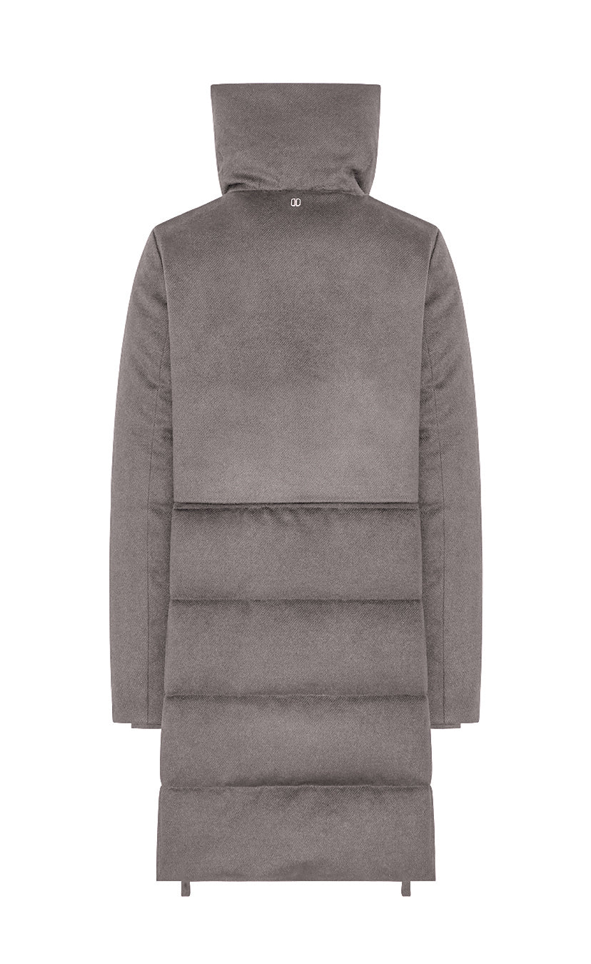 Lightweight technical wool with a slightly diagonal pattern, characterized by a soft texture, a clean appearance on the surface and pilling resistance. The down padding adjusts the thermoregulation of the body, preserving the microclimate inside the garment.