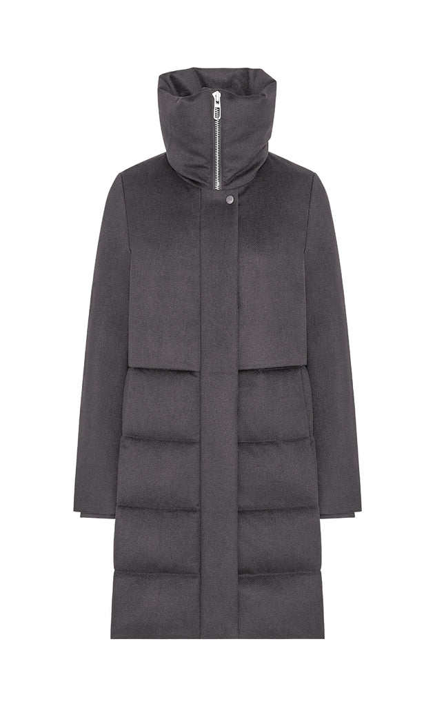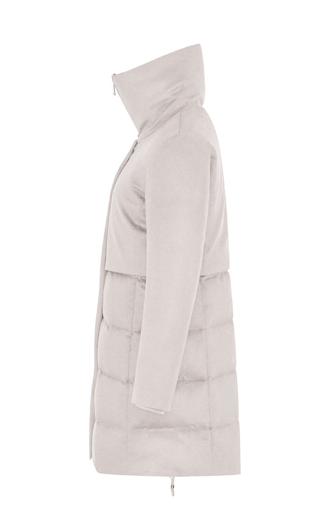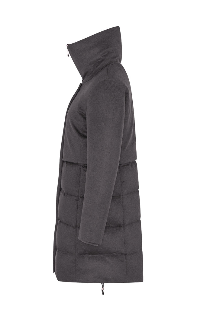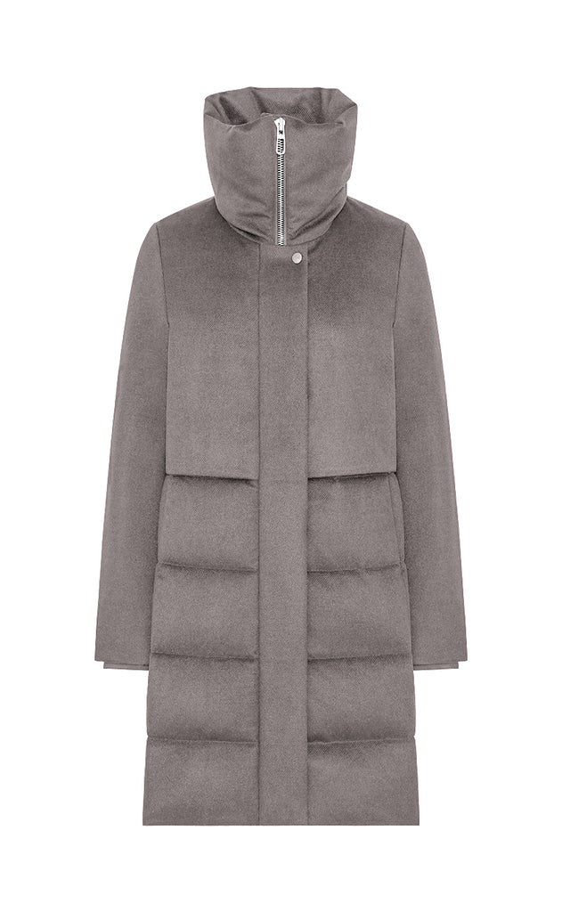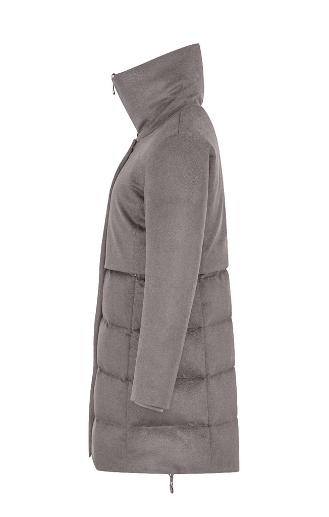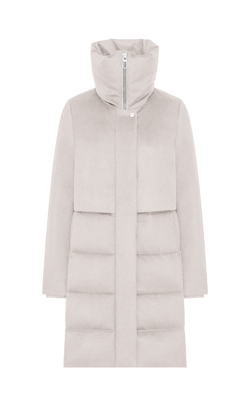 Lightweight technical wool with a slightly diagonal pattern, characterized by a soft texture, a clean appearance on the surface and pilling resistance. The down padding adjusts the thermoregulation of the body, preserving the microclimate inside the garment.