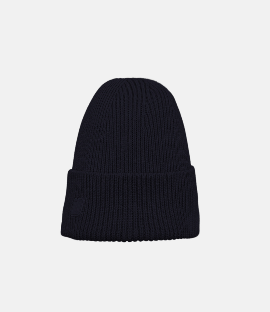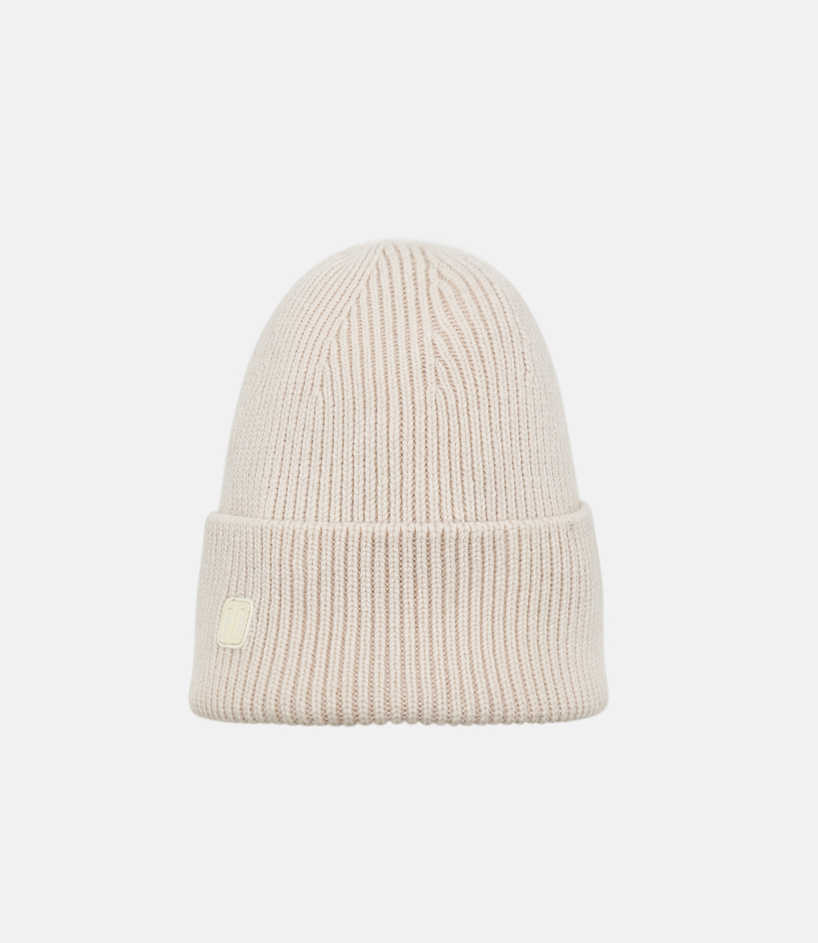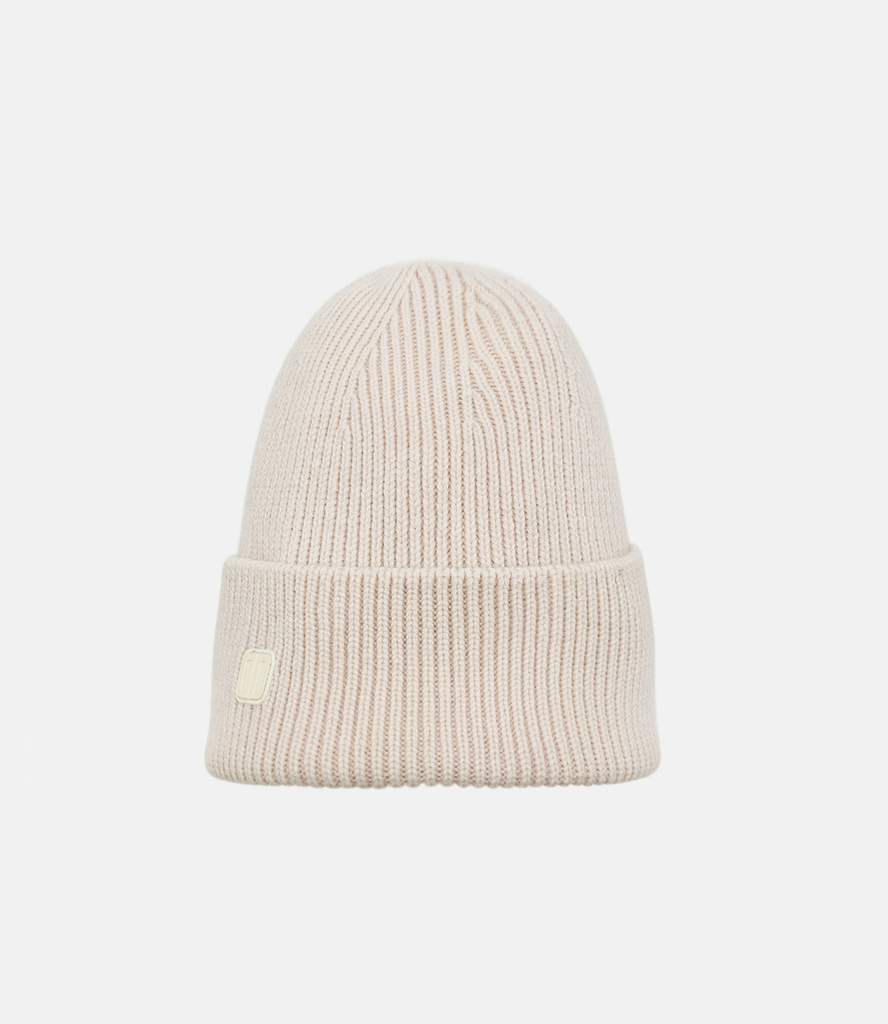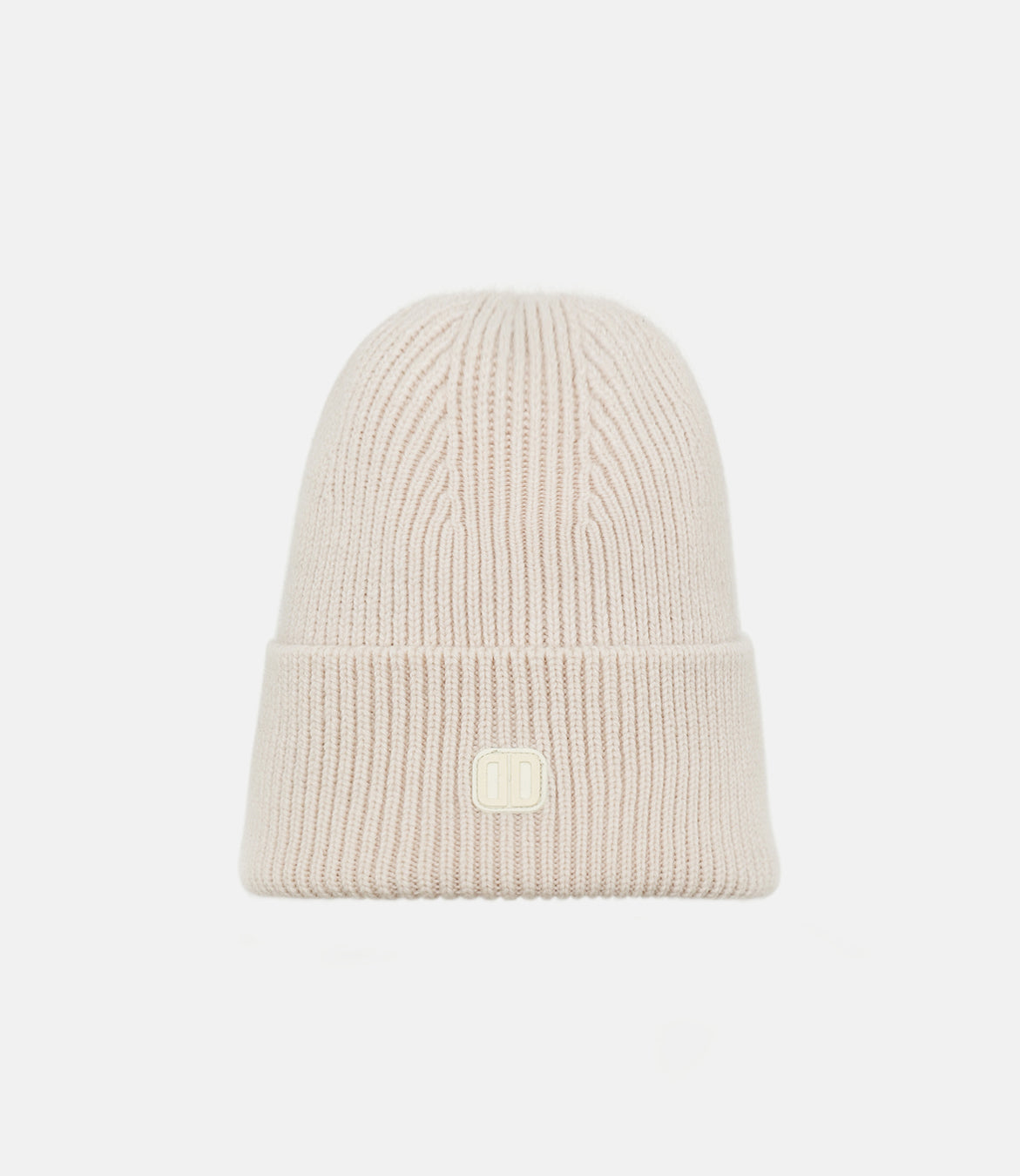 Cappellino in lana con logo in rilievo in silicone a tono di colore.
