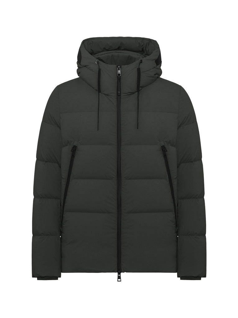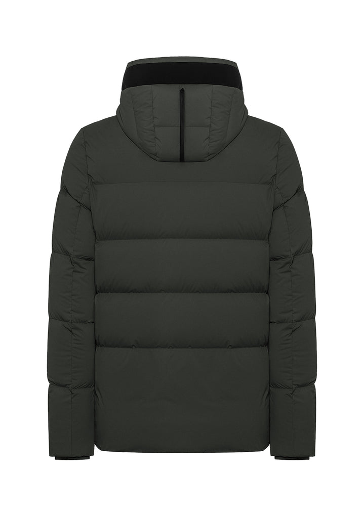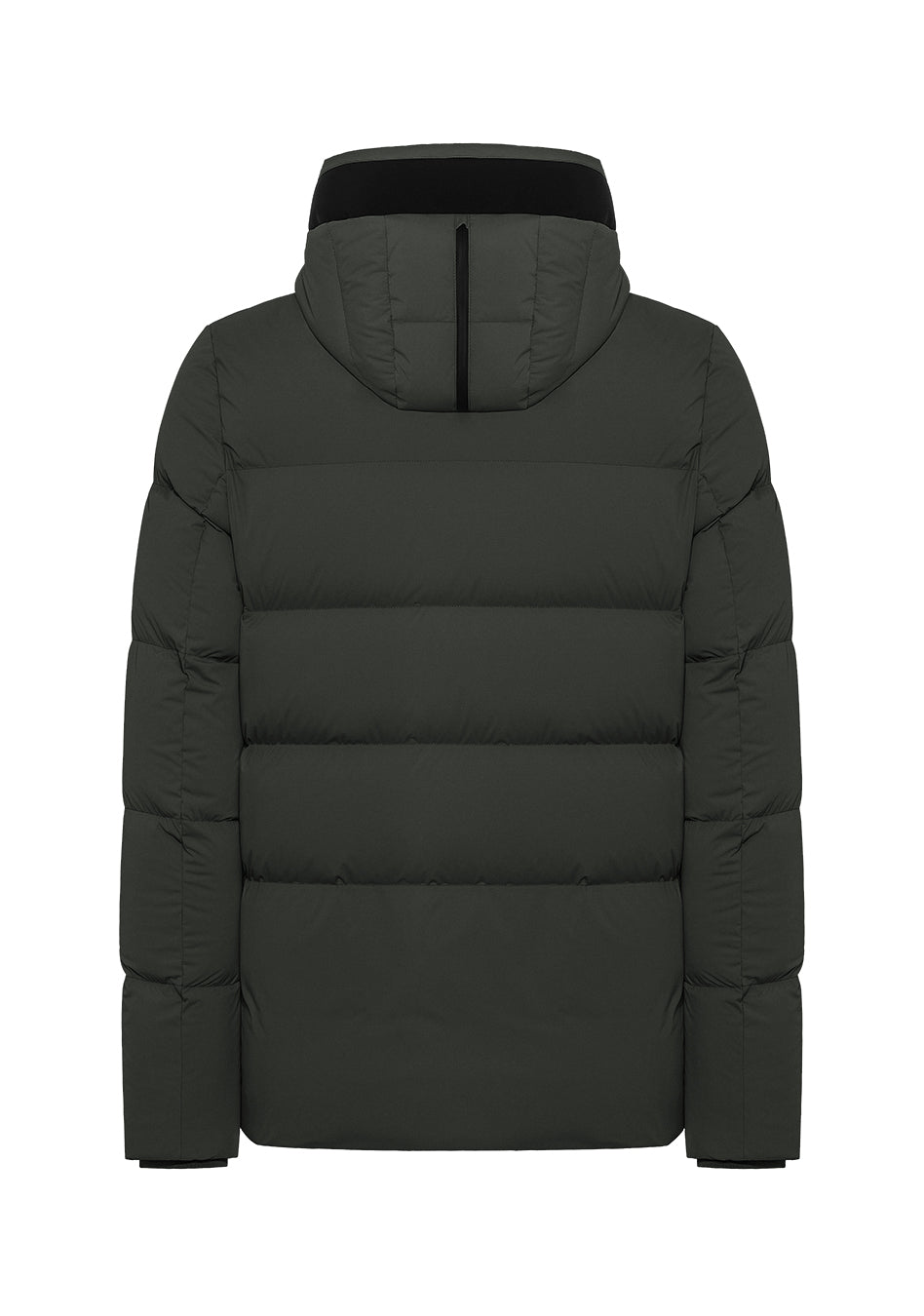 CARATTERISTICHE DEL TESSUTO Tessuto tecnico bi-stretch estremamente comfort nel movimento, water-resistant e resistente alla piegatura. L'imbottitura in piuma restituisce un' estrema leggerezza e permette la termoregolazione del corpo, preservando il microclima interno al capo.