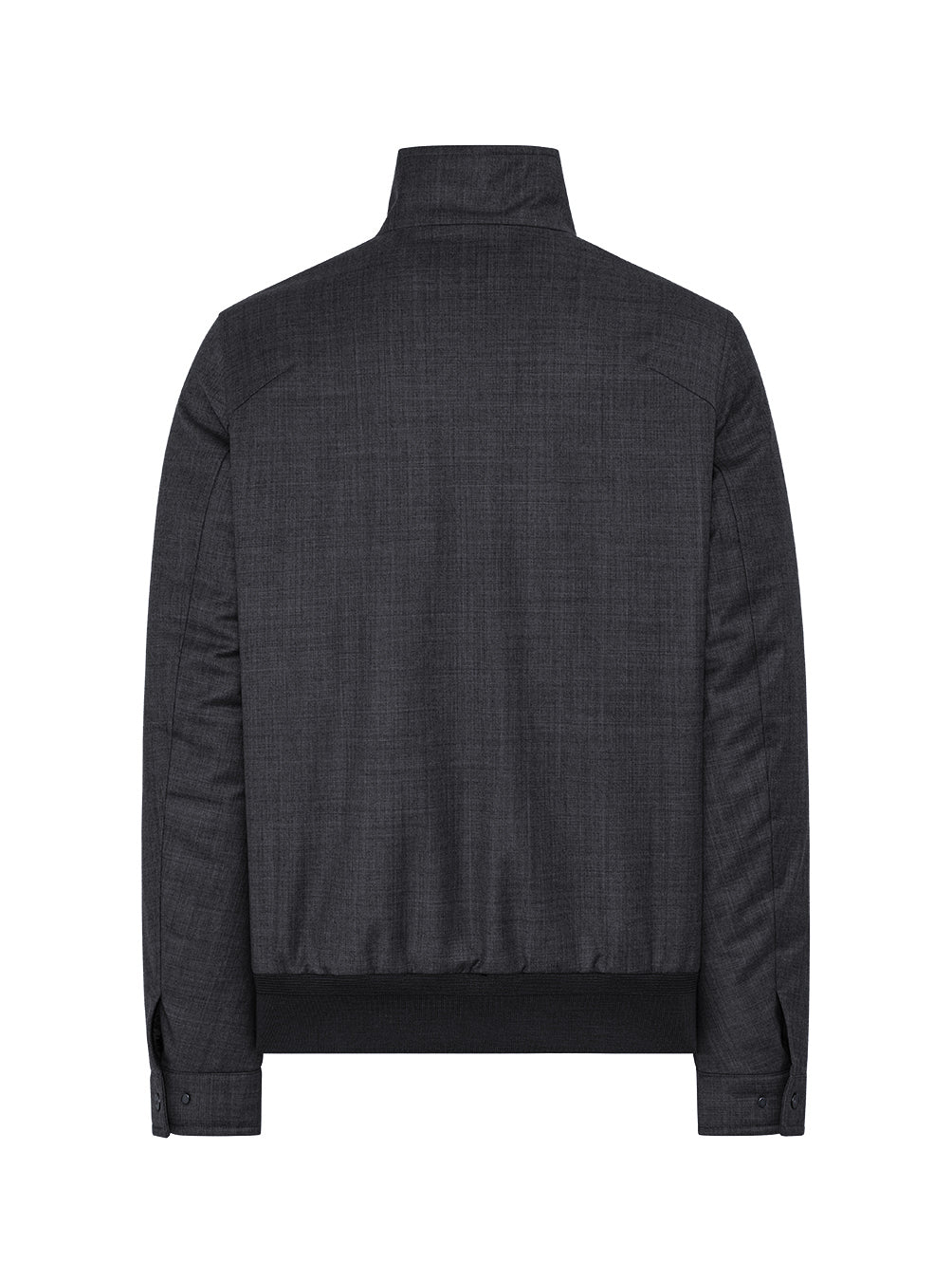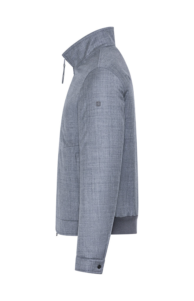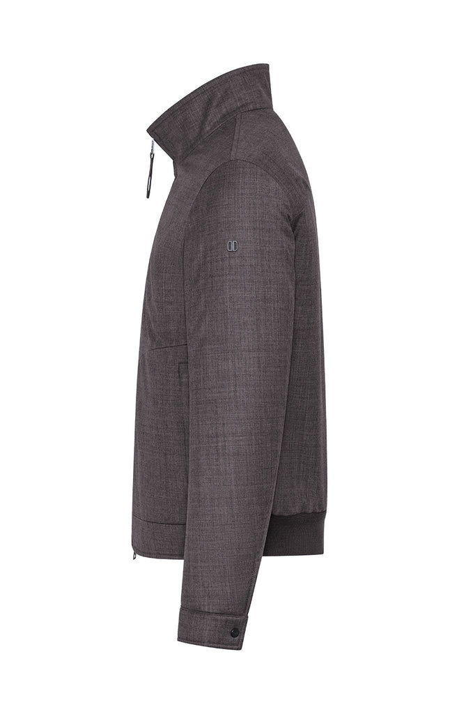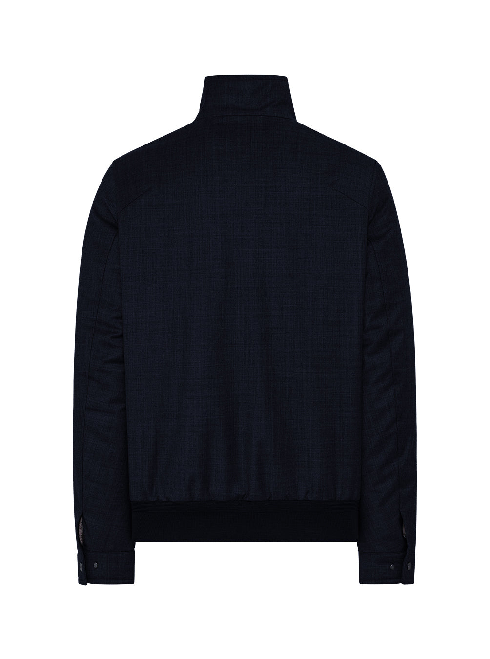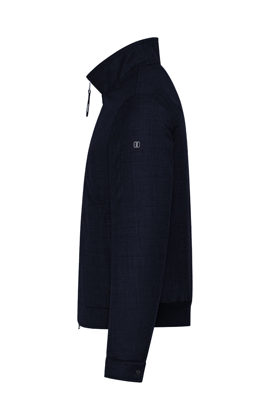 Giacca corta realizzata in pura lana con fodera in pelliccia sintetica. Collo in piedi con interno in costina di lana, chiusura frontale con zip doppio cursore a tutta altezza e fondo dietro con costina di lana. Tasche laterali con zip coperte da filetto e fondo manica con polsino regolabile tramite automatici. Tasche interne con zip.