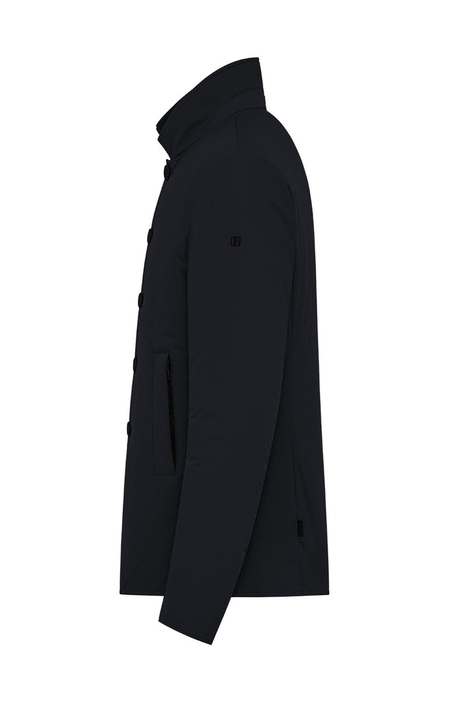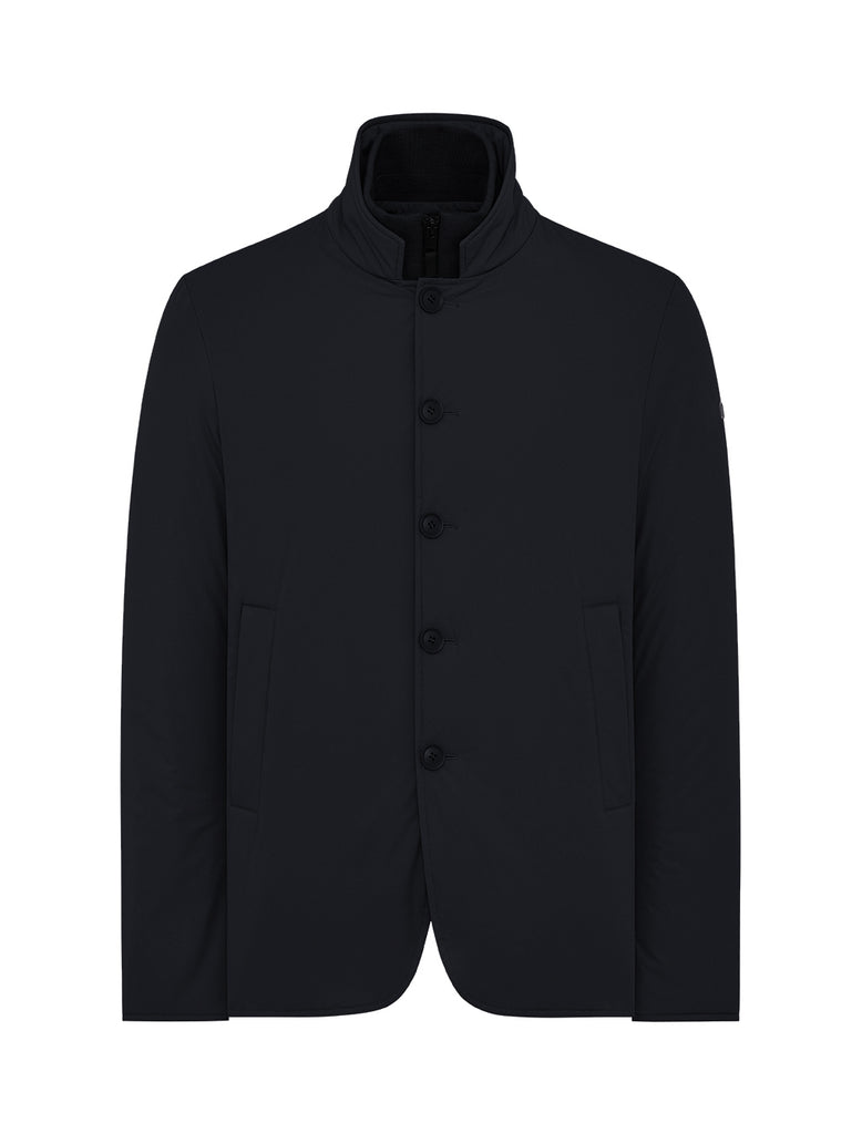 Giacca super confortevole e leggera realizzata in tessuto bi-stretch ed imbottitura brevettata THINDOWN® che contiene vera piuma. Collo in piedi con dettaglio di neoprene a tono di colore e logo in rilievo, chiusura frontale con bottoni e tasche laterali a filetto con zip water-resistant. La giacca è caratterizzata da pettorina staccabile con collo in maglia di lana e chiusura con zip water-resistant. All'interno tasche multifunzione con zip e dettagli catarifrangenti.