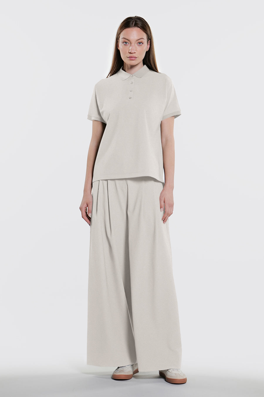 Tessuto tecnico leggero, stretch e fresco al contatto con la pelle; struttura mossa, è caratterizzato da buona capacità igroscopica, alta traspirabilità e resistenza alla piegatura.