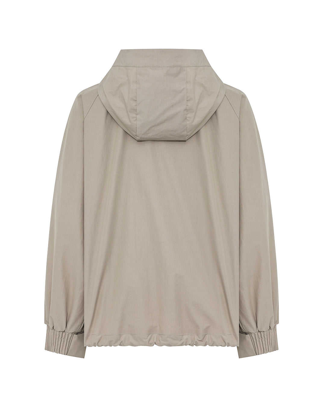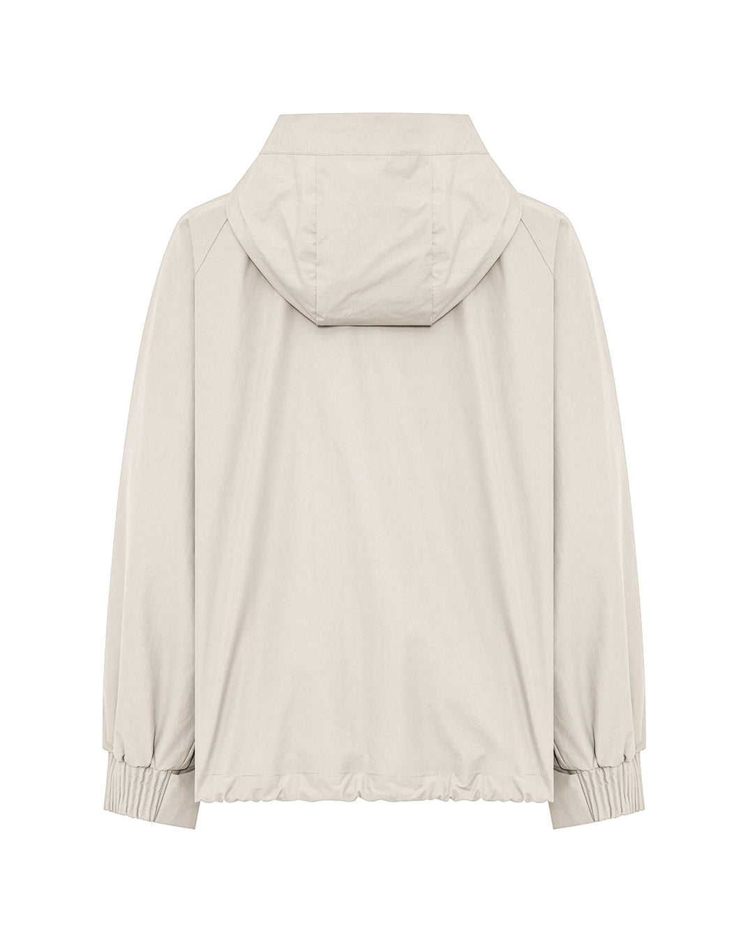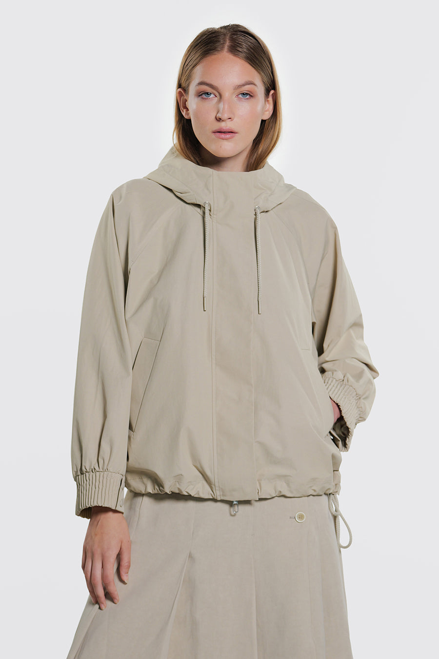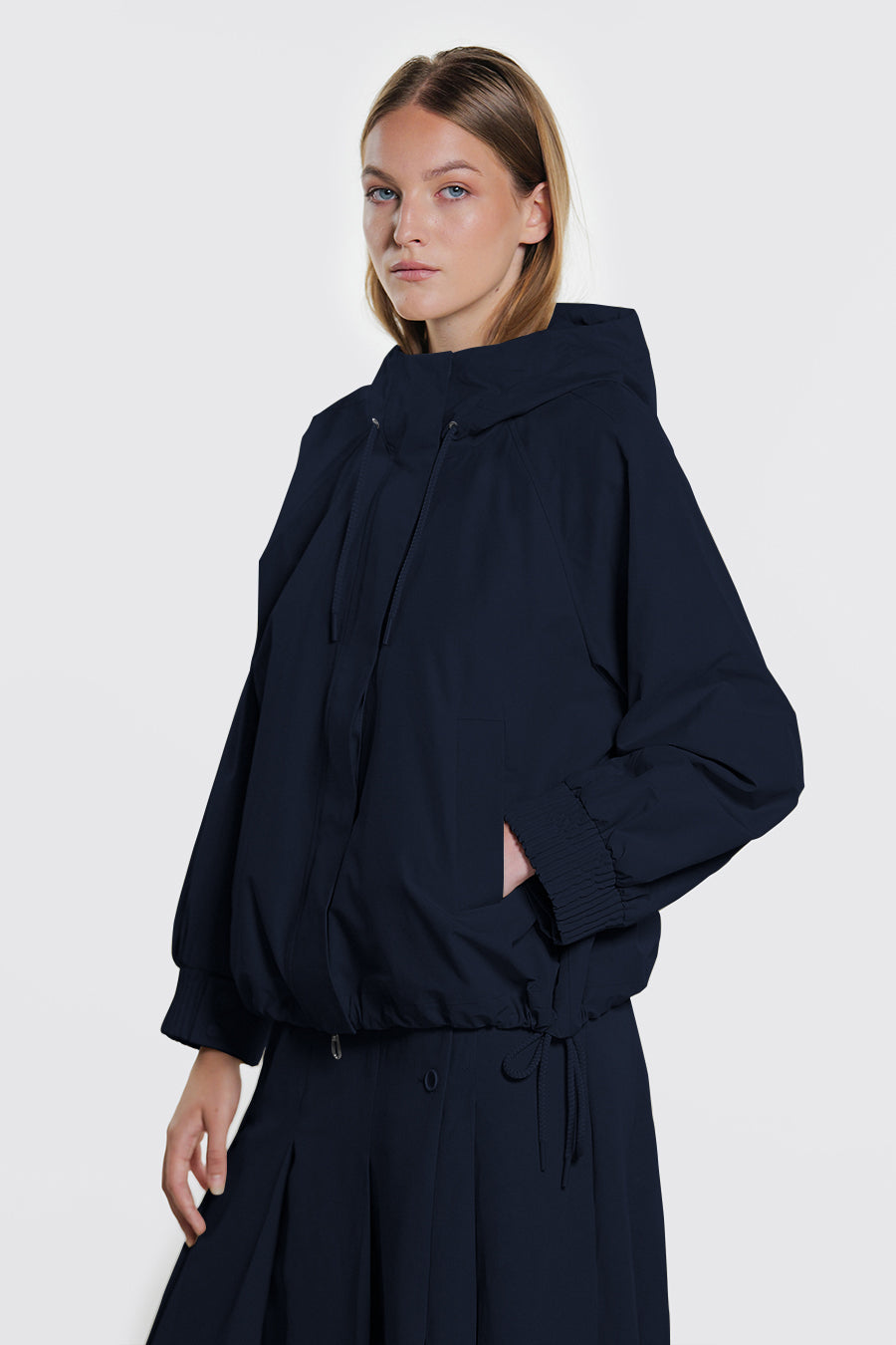 • Raglan sleeves with balloon line at the bottom, gathered by a high cuff with hidden sewn elastic band, adjustable with snap buttons