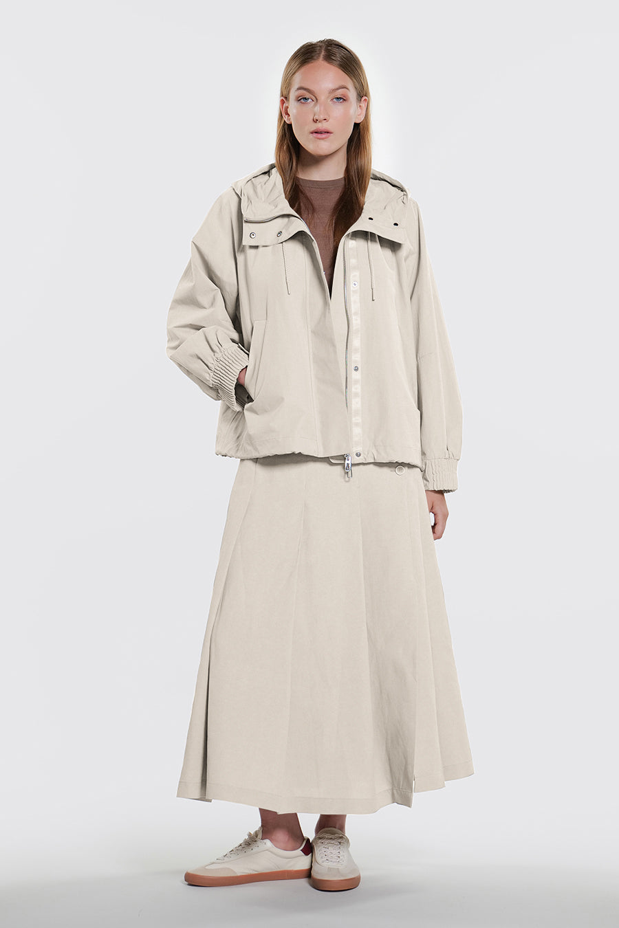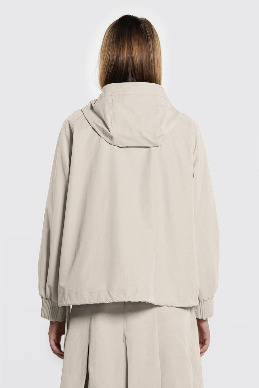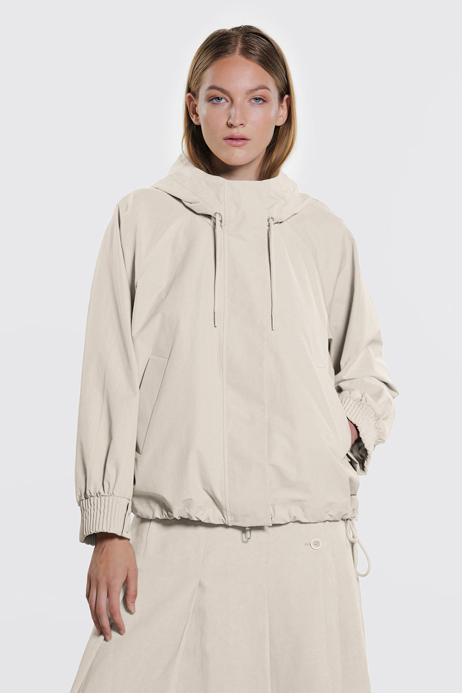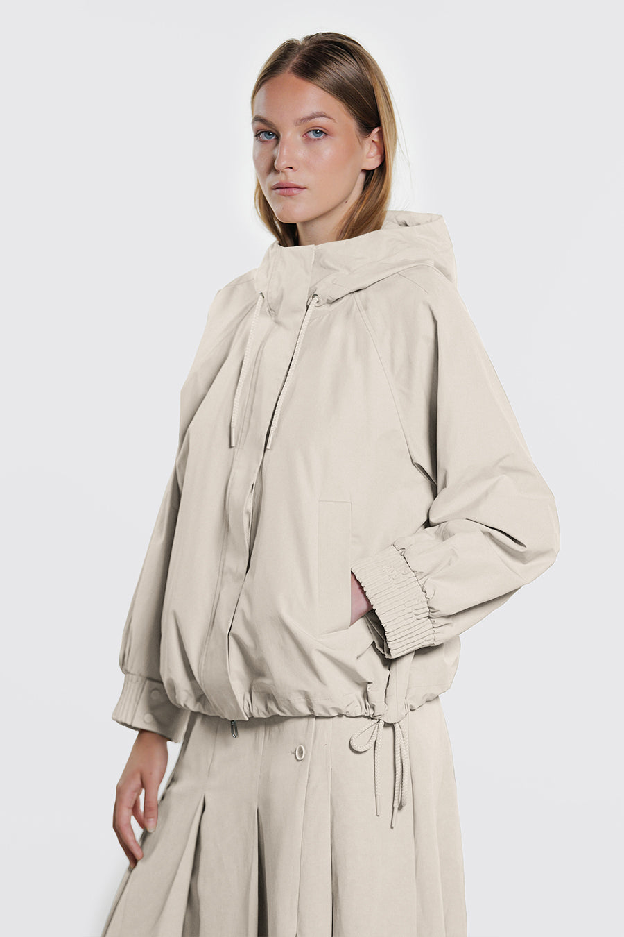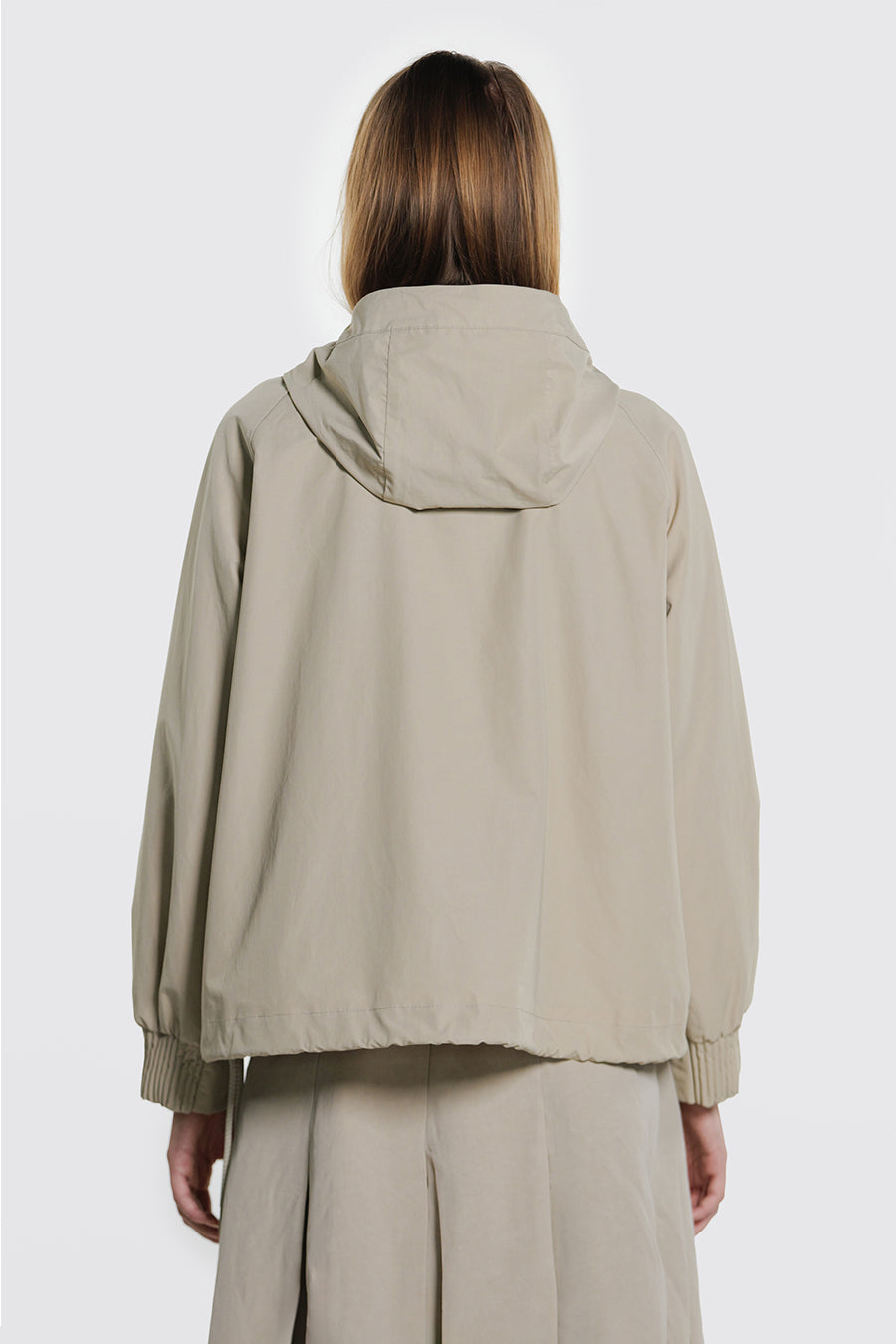 • Raglan sleeves with balloon line at the bottom, gathered by a high cuff with hidden sewn elastic band, adjustable with snap buttons