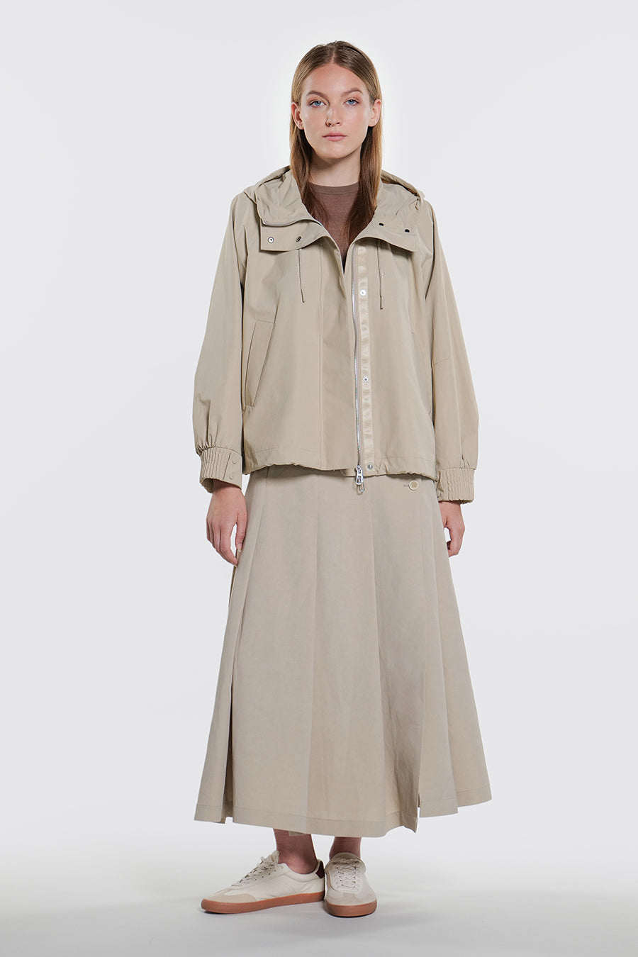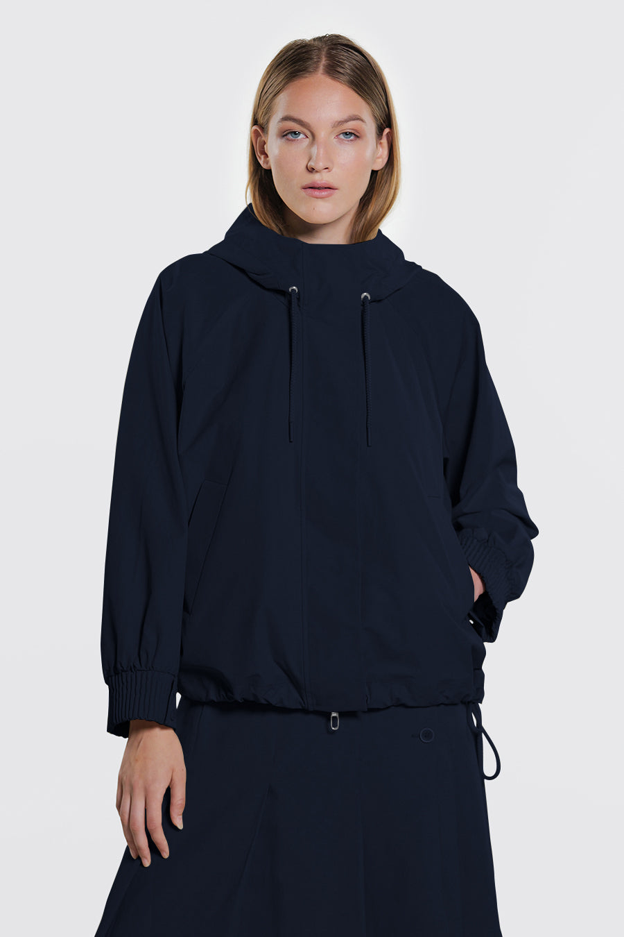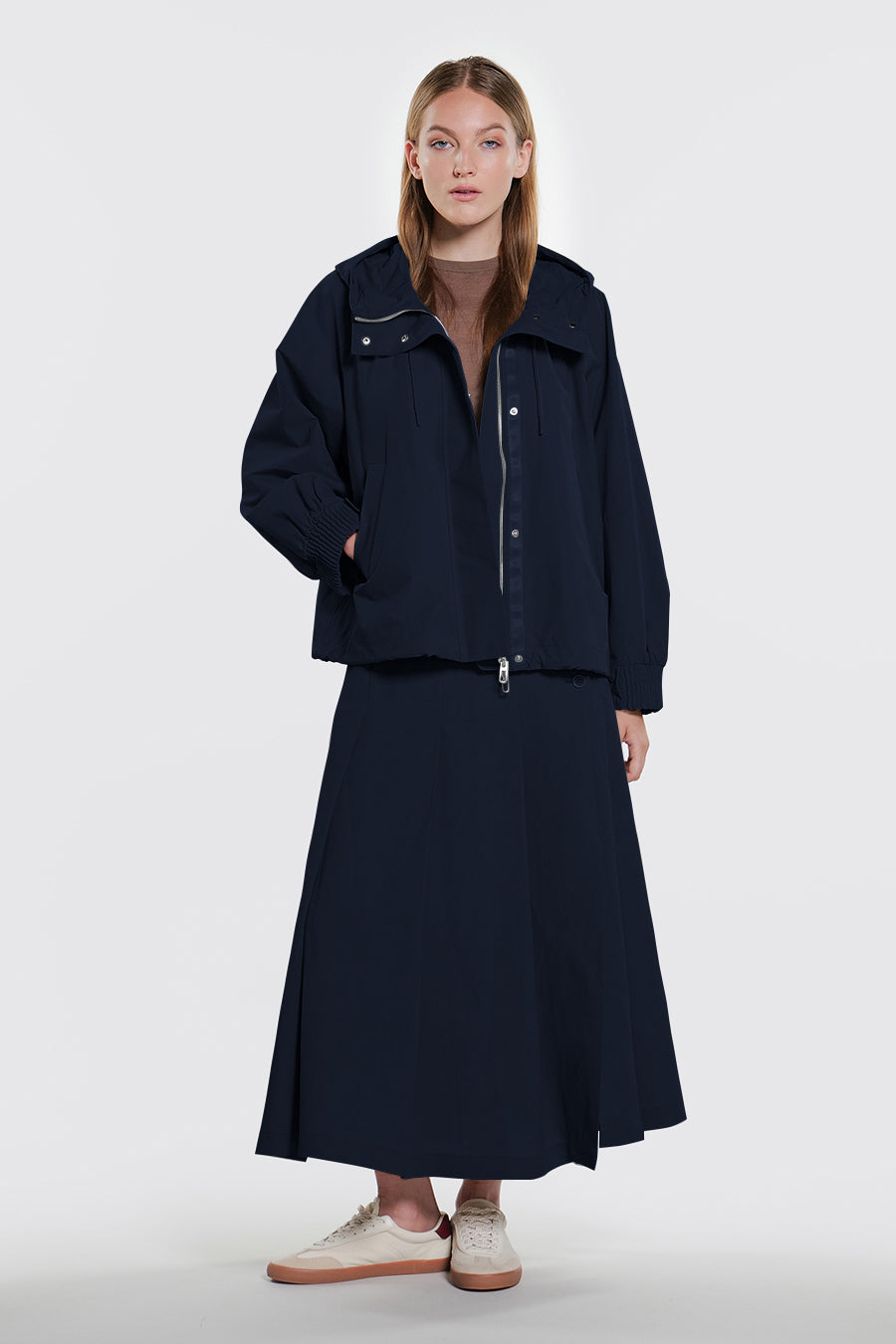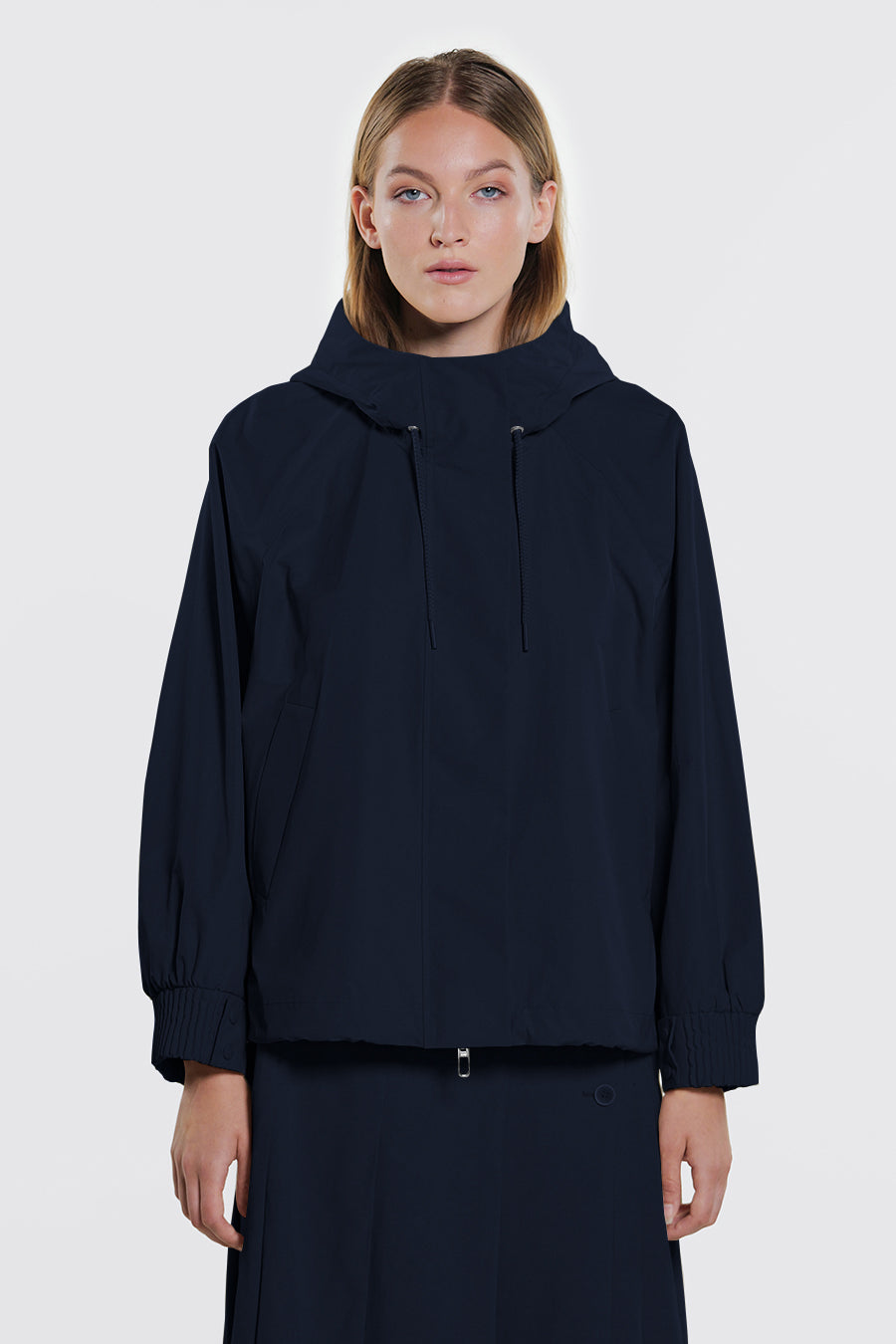 • Raglan sleeves with balloon line at the bottom, gathered by a high cuff with hidden sewn elastic band, adjustable with snap buttons